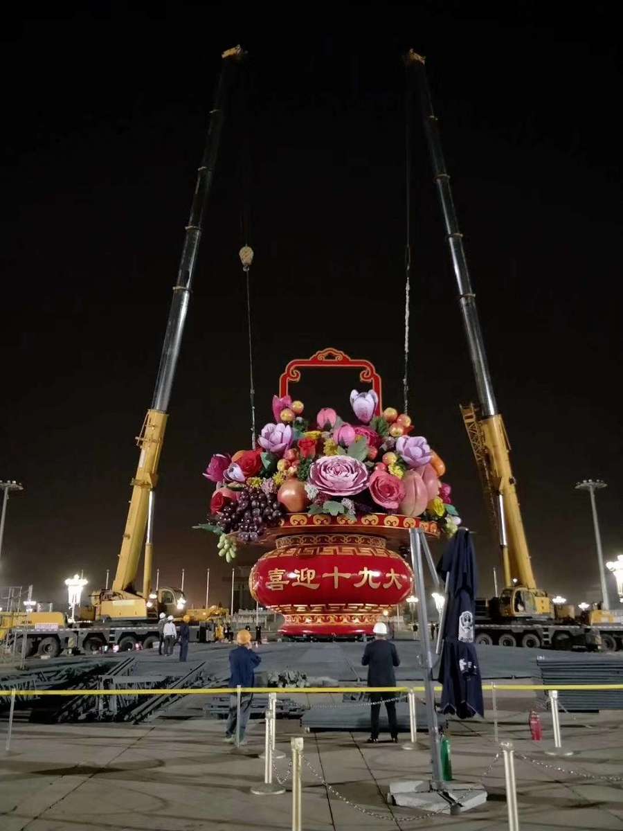 喜迎十九大,徐工起重机助力天安门巨型花篮吊装