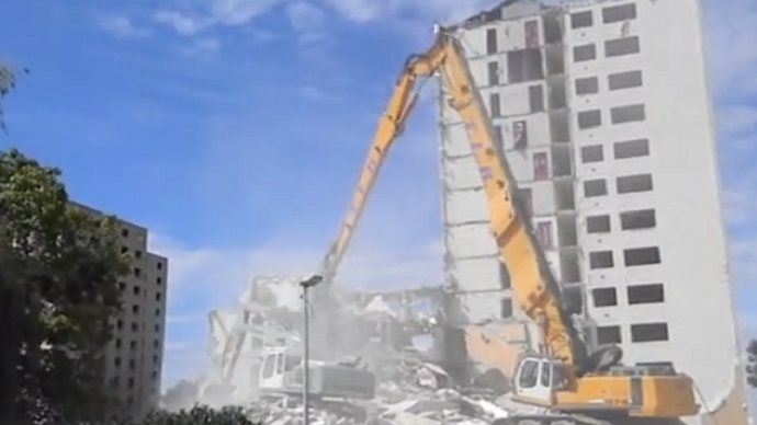 轰轰烈烈的拆除房屋, 大型机器现代挖掘机智能技术