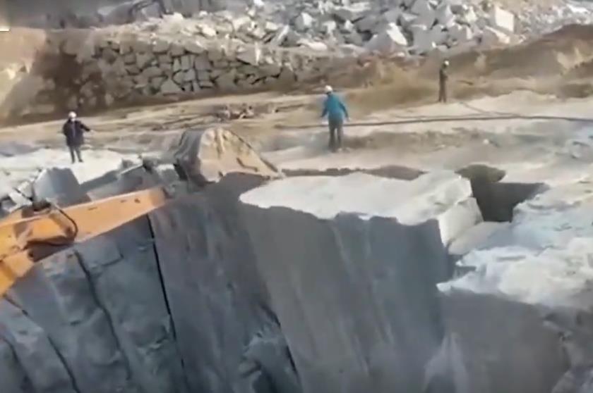 2000吨的巨石突然倒下,看挖掘机如何机智脱险