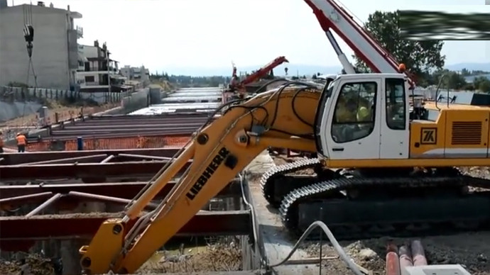 国外小伙开挖掘机作业,好多鹅卵石,真是有气没地出