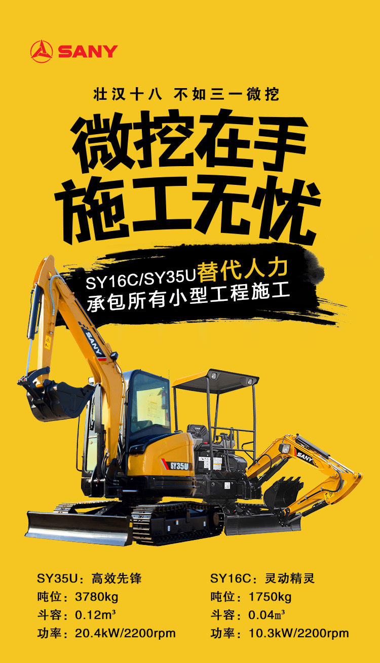 替代人力首选 三一SY16C/SY35U微挖承包所有小型工程施工!