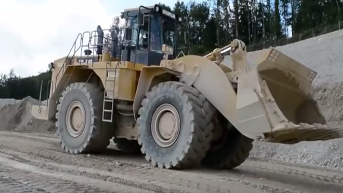 实拍:卡特彼勒990F装载机给后八轮装煤,这效率你能想象?