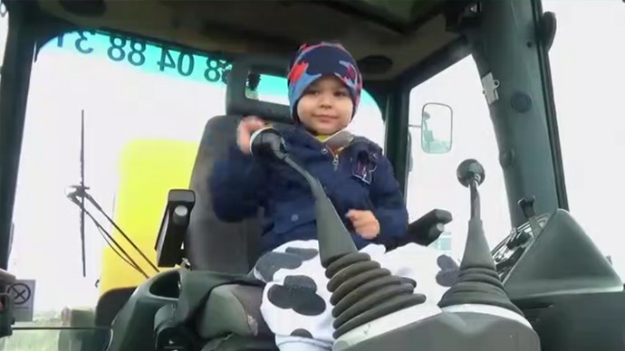 挖掘机操作这么流畅,原来是一个7岁的熊孩子在玩