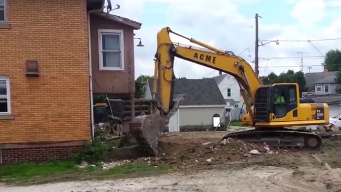 国外拆房子不需要太多人力!几台挖机就能轻松搞定