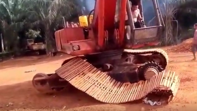 挖机履带掉了,师傅用挖机头直接装好,这技术太强了