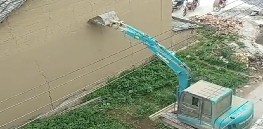 恕我直言!看到眼前一幕,到底是拆房子还是拆挖掘机?