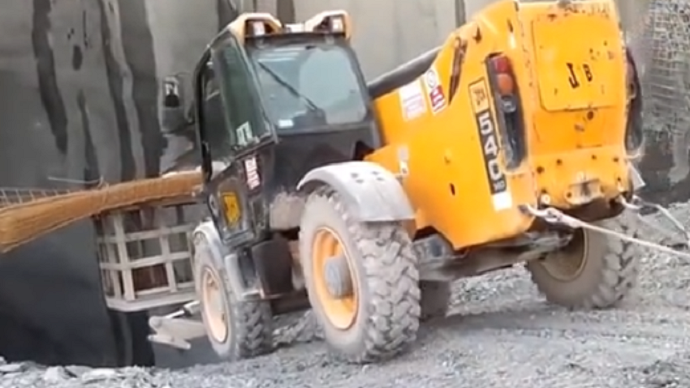 装载机沿着30度斜坡, 走入10米深的坑中, 网友: 满分的操作!