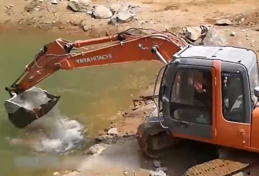 坐挖掘机洗澡,这水颜色没谁了吧!