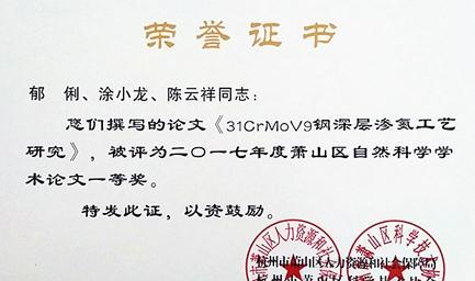 杭齿集团公司6篇论文获评2017年区优秀学术论文