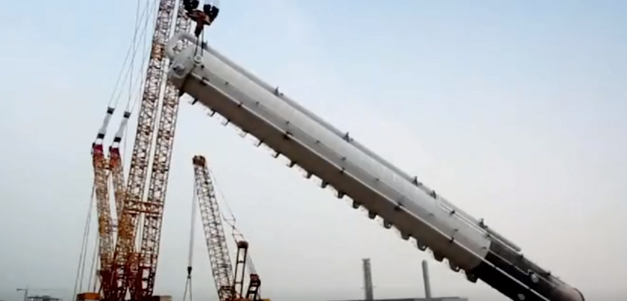 曼恩8×4大件平板车侧面装载和运输利勃海尔984大型挖掘机