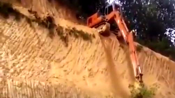 不就是个陡坡嘛 老司机开着挖掘机就下来了!