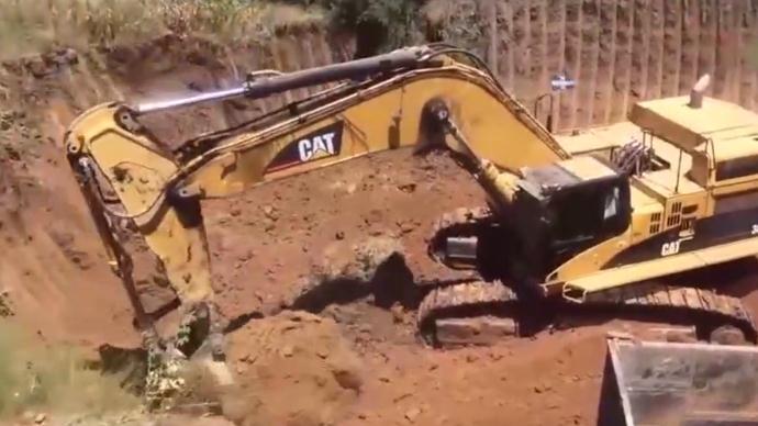 这是谁出的馊主意,现在挖掘机卡在这怎么办?