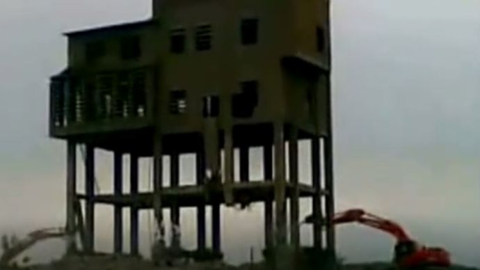 挖掘机拆废弃建筑,1分钟搞定,2万工钱到手下班!
