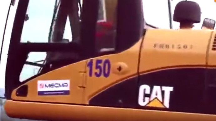 洪水来楼房成孤岛 挖掘机当桥来救援