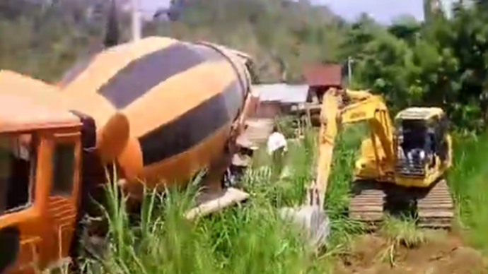 在工地跟挖掘机司机弄好关系真重要,这次帮了搅拌车大忙了