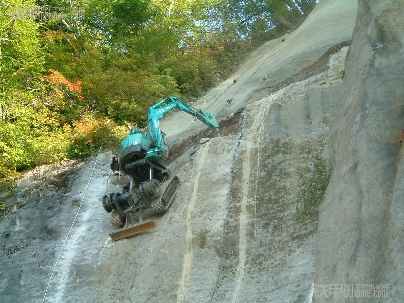飞檐走壁 日本遥控陡坡挖掘机绝壁攀岩