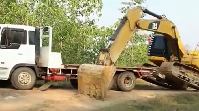考验技术的时候到了,挖掘机上拖车,司机会怎么做