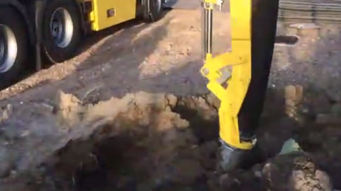 实拍:挖掘机加装工具干活,在国外工地很火的一个工具!