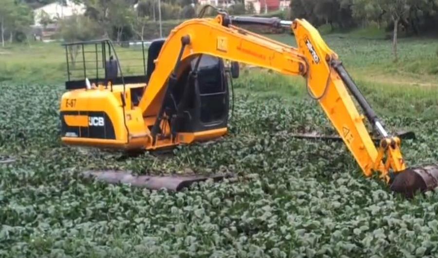 暴雨后河水暴涨,还开大挖掘机作业,这么拼!