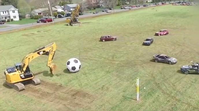 挖掘机可以用来踢足球了肯定是蓝翔毕业的