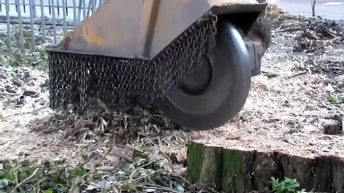 挖掘机换个锯片秒变树桩粉碎机