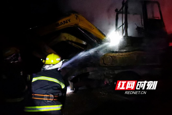 挖掘机突然起火燃烧 攸县消防及时扑灭