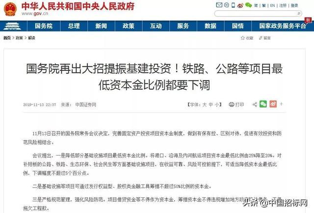 国务院再出招提振基建投资!公路、铁路等项目最低资本金比例下调
