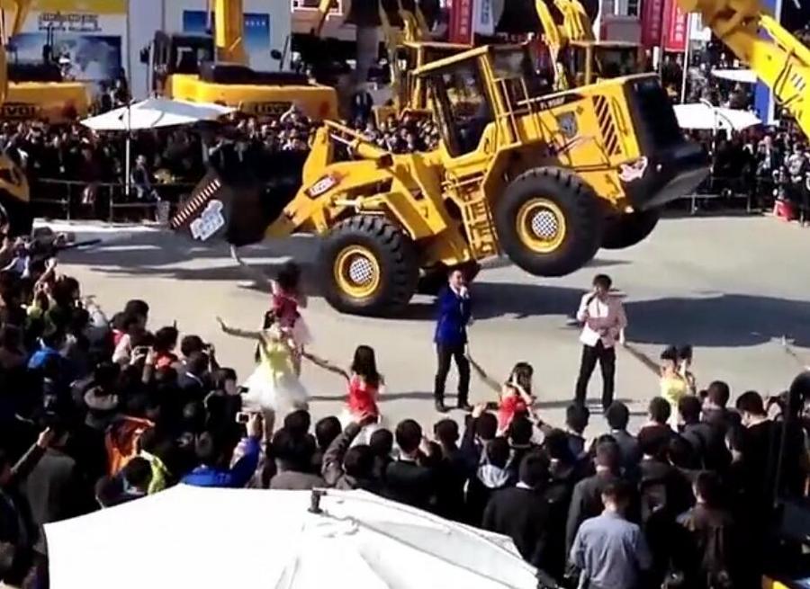 装载机表演小苹果舞蹈, 这驾驶技术让人叫绝!