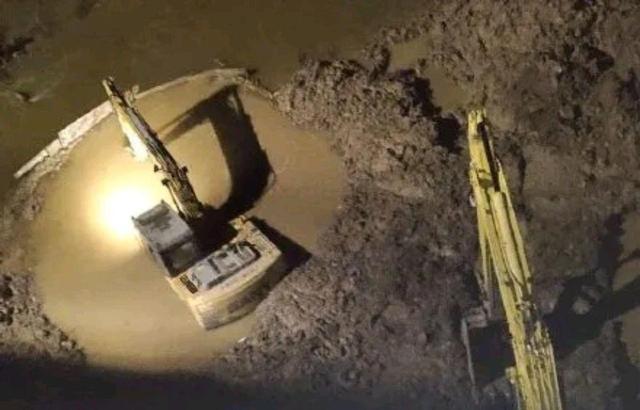 今晨蓬溪境内一挖机陷入河中,面对或将造成的百万元损失