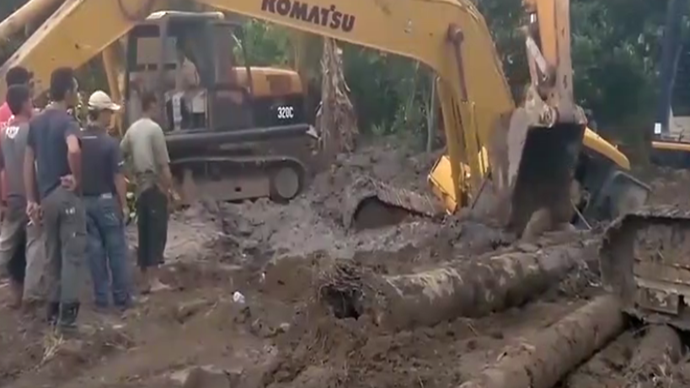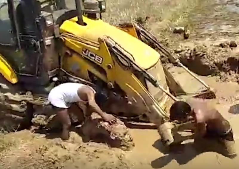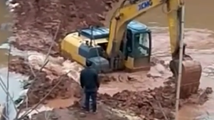 【眼界】挖掘机水塘陷入绝境 危机时刻的暖心一幕