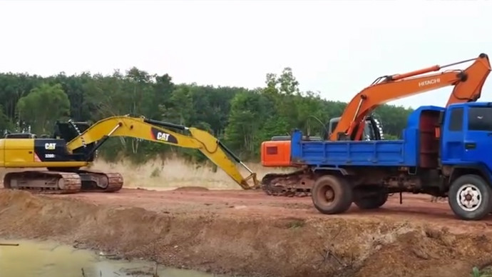 挖掘机作业过程,场面真宏大!这行业是不是越来越好搞了?