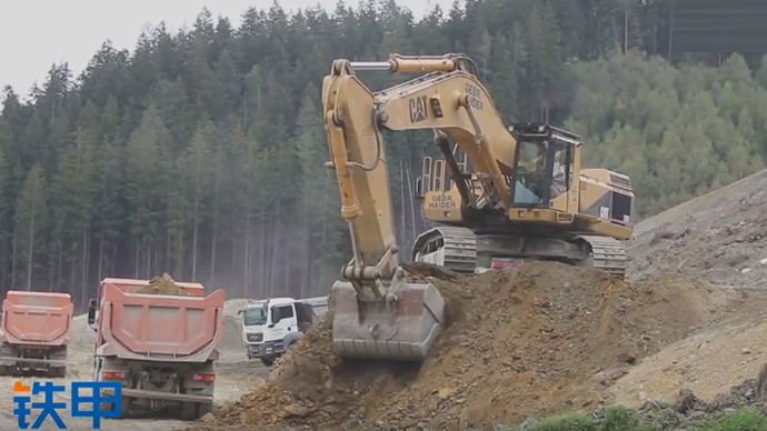【眼界】工地作业的挖机 好几辆卡车环绕只为……