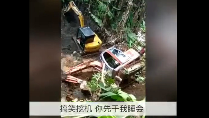 开挖机游全国的路上挖机陷在山泥里终于就出