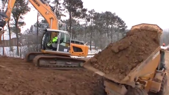 双油缸,特雷克斯大型挖掘机,装载卡特777自卸车