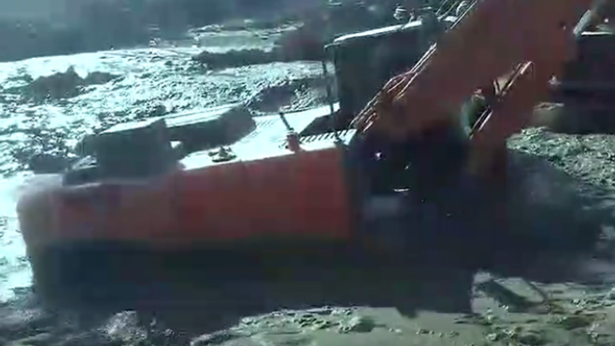 在悬崖上工作的挖掘机,车身一抖一抖的,怪吓人!