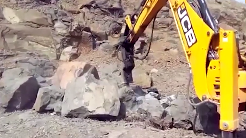 JCB挖掘机工作视频,装上破碎机,轻松粉碎石头