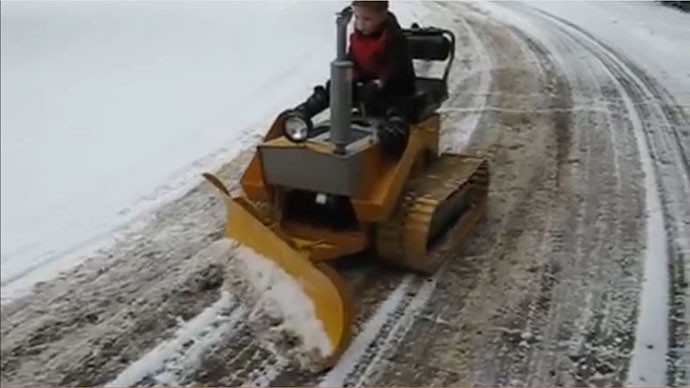 【眼界】英雄出少年!五岁男孩竟然开着推土机去铲雪