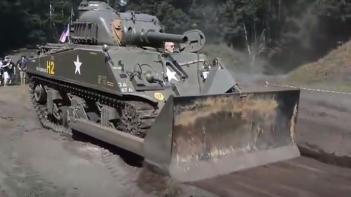 二战谢尔曼坦克装上了推土铲,坦克推土机诞生了