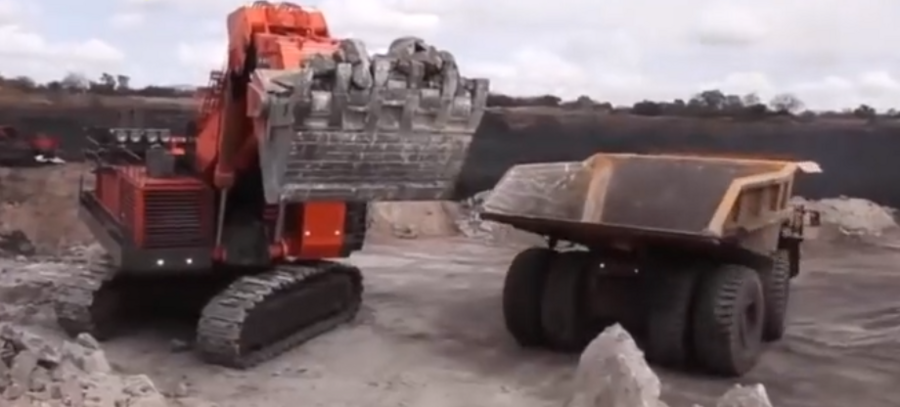 惊险巨型挖掘机施工现代技术、重型设备大型机械