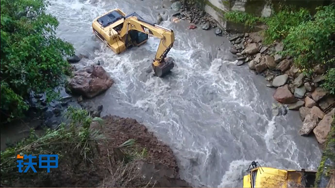 【眼界】卡特挖机深水遇难 好基友前来解困