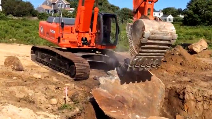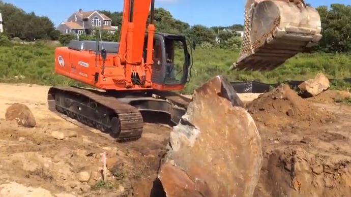挖掘机司机表演高超挖石技术,隔壁老板前来录像学习!