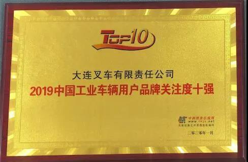 【品牌】大连叉车荣获“2019中国工业车辆用户品牌关注度十强”