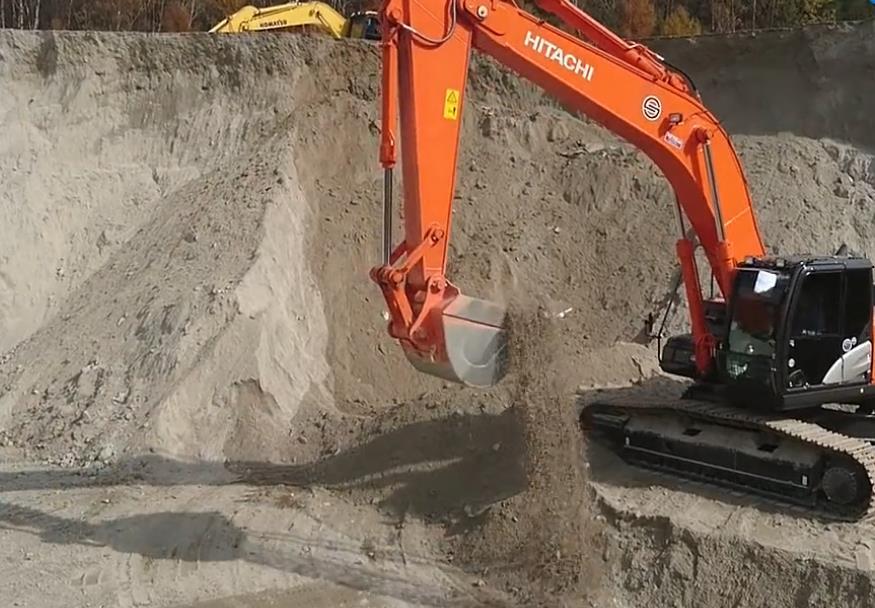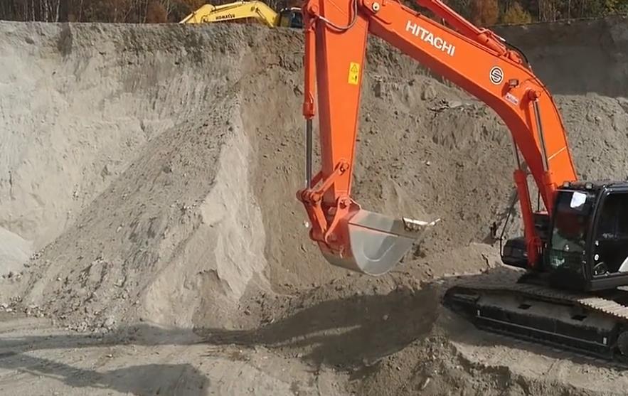 实拍:日立挖掘机挖土装车,装满之后还不忘帮忙抹平