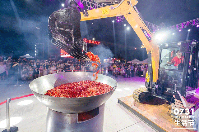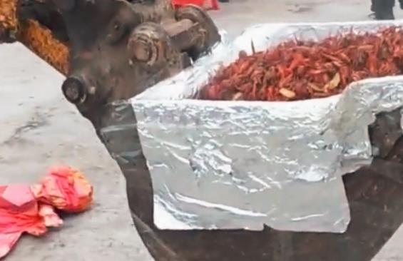 三一挖掘机爆炒300斤小龙虾,5分钟光盘