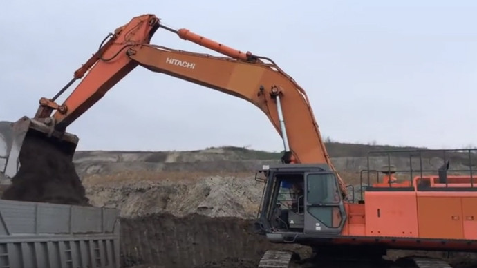 机械百科:日立450挖掘机挖土装车,不明白为什么装个小挖斗