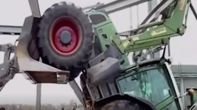 挖掘机救援掉坑里的推土机,没想到一铲子下去推的更深,在报仇吗