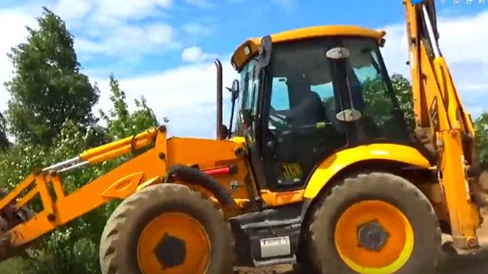 国外小朋友脚够不着油门,还是把挖掘机开走了