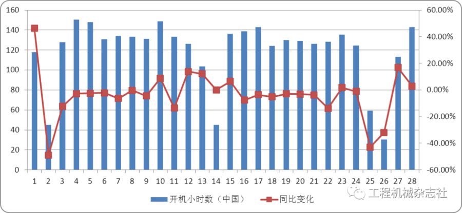 1月小松挖机开工小时数71.3小时,同比下降35%
