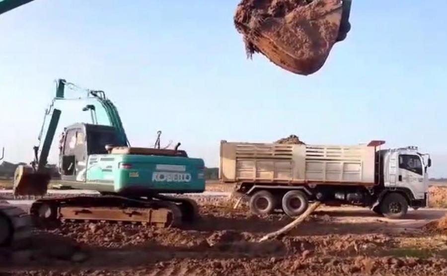 2台神钢挖掘机干土方活比赛,两人的速度都很快!