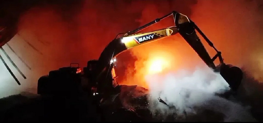 橡胶厂突发火灾!三一挖掘机“穿越火线”急排险